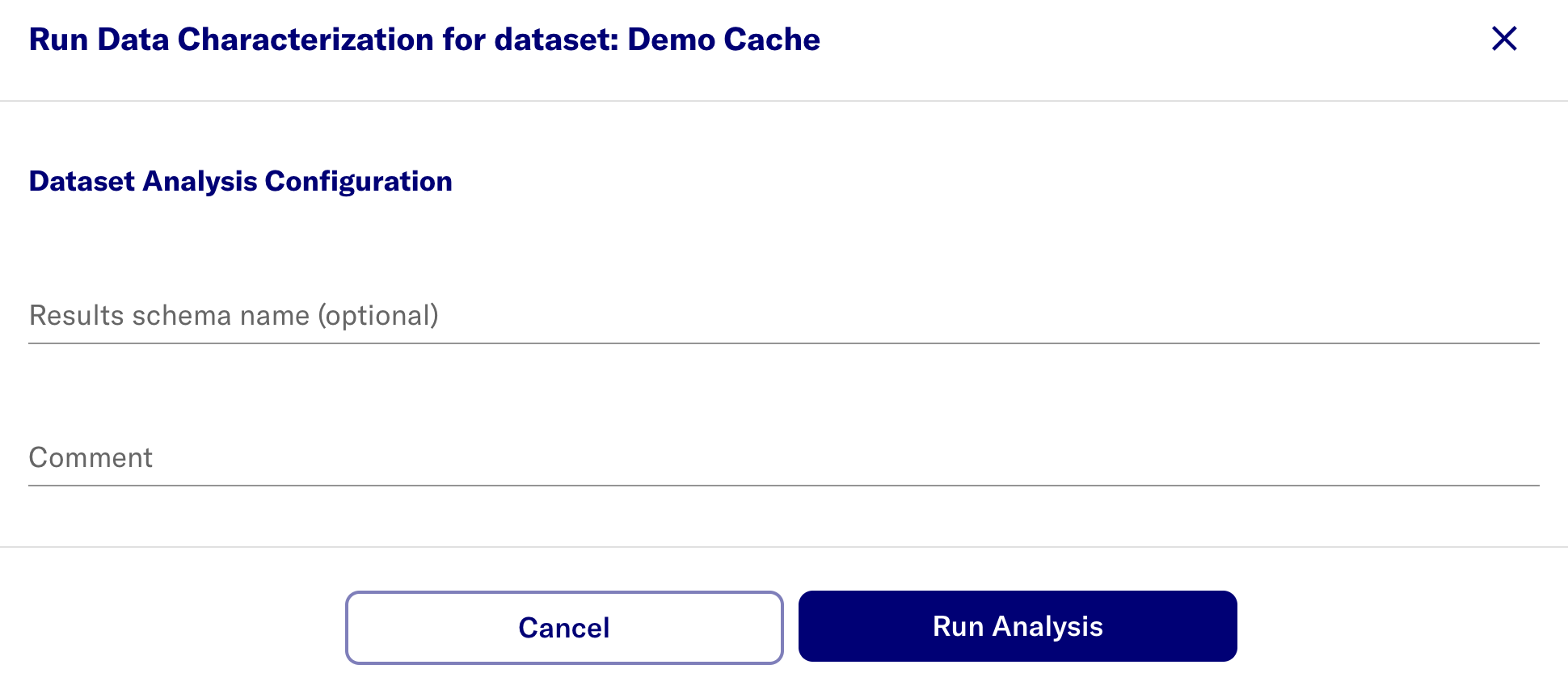 - Select Run data characterization